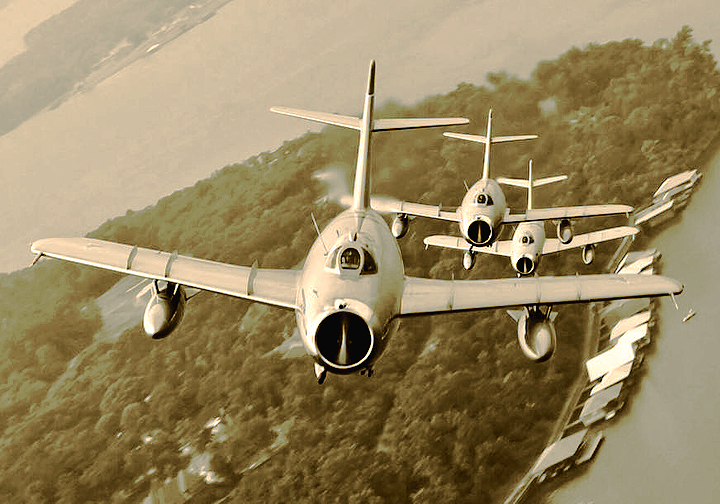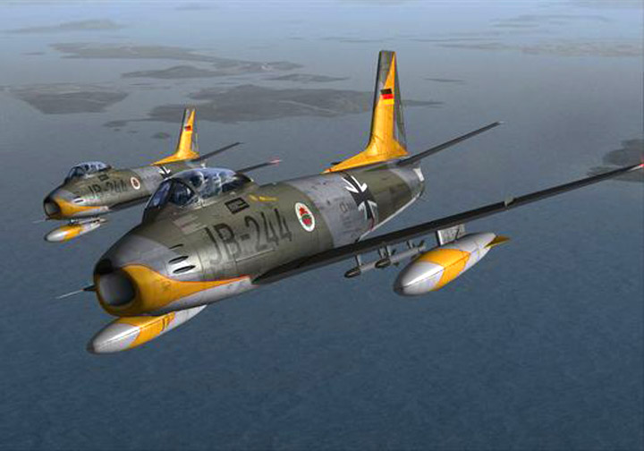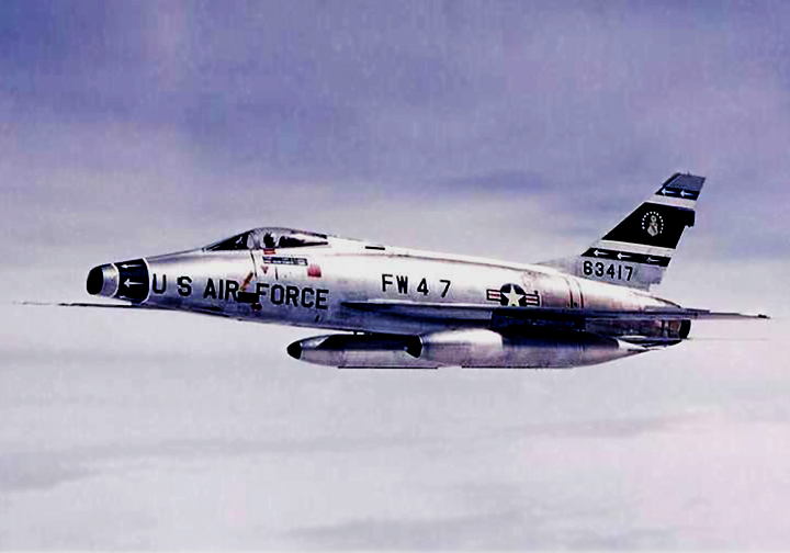 In 1957, the newly reformed Luftwaffe of the Federal Republic of Germany (West Germany) obtained 75 Canadair Sabre Mark 5s. These are from JG 72 based at Leck. Unlike the RCAF Sabres, German Mark 5s were armed with AIM-9B Sidewinders as well as guns. In combat any fleeing MiG could have had one of these heat seekers flying up its tail pipe.
