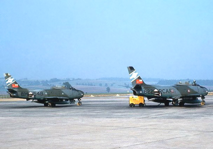 Sabre Mark 6s of 430 “Falcon” Sqn., RCAF 1 Air Division, on Zulu Alert at Grostenquin, France, in the early 1960s. Two Sabres were kept on 24 hour standby and could be airborne in minutes. One pilot said that when he was assigned Zulu duty on Christmas day they brought a turkey dinner out to him in the cockpit, but he was ordered to take off immediately. He said the turkey dinner was yanked away like it was on a string.